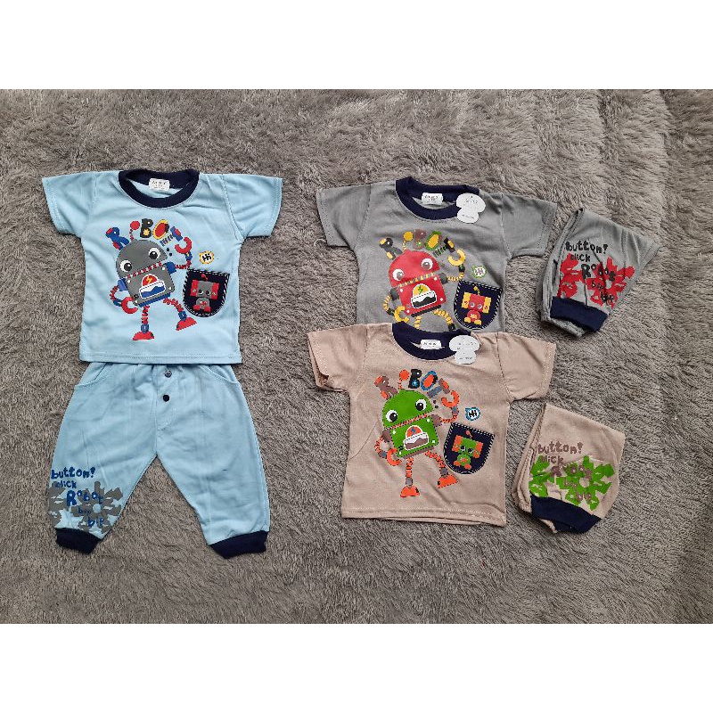 Harga Setelan Kaos Bayi Laki Laki Usia 6-12 Bulan / Baju Anak Laki Laki Murah Amena Robot / Setelan Kaos Celana Panjang Anak Bayi Laki Laki 6-12 Bulan