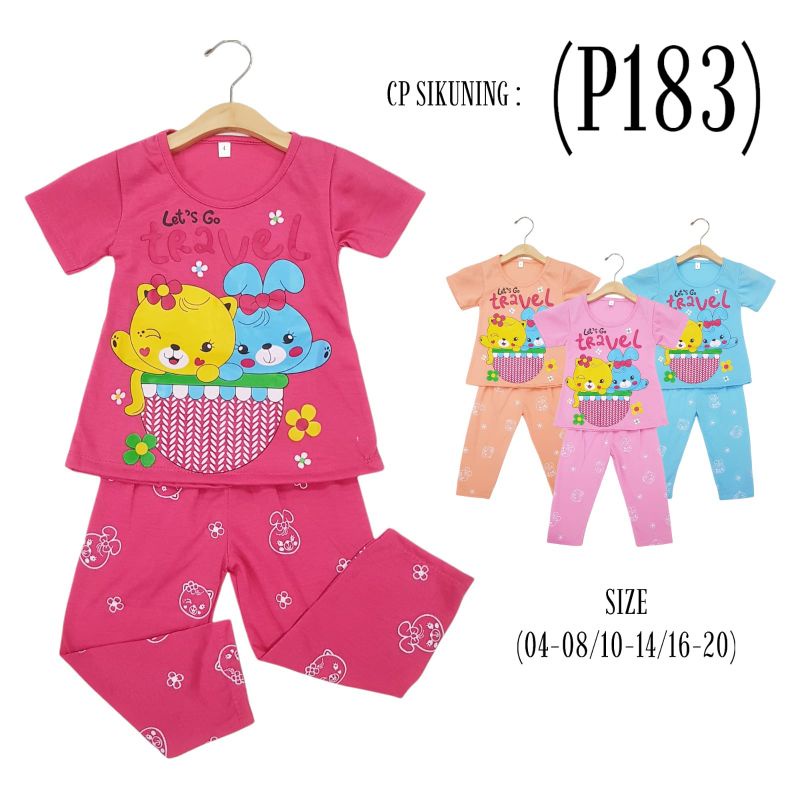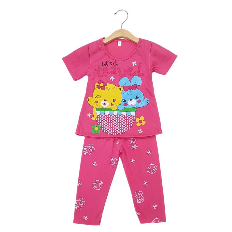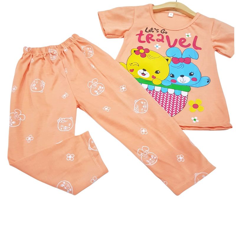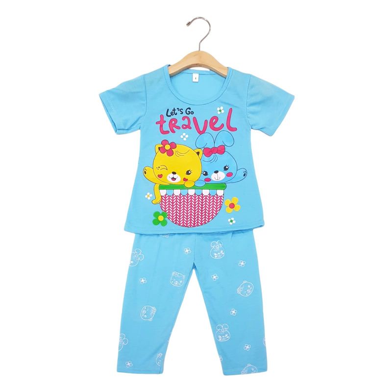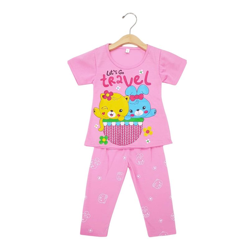 Harga SETELAN SIKUNING PAKAIAN BAJU ANAK PEREMPUAN 2-7 TAHUN MOTIF LEST GO TRAVEL LENGAN PENDEK CELANA PANJANG