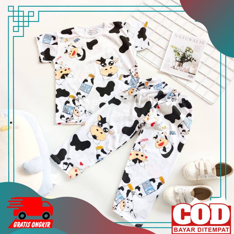 Piyama Baju Anak Perempuan Dan Laki Laki Satu Setel Motif Moo Usia 1-6 Tahun