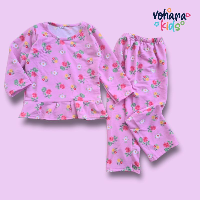 Harga VOHARA Setelan Anak Perempuan Setelan Peplum Bunga Series 1-5 tahun Setelan Anak Cewe Kekinian
